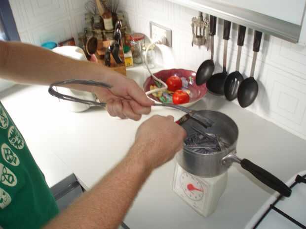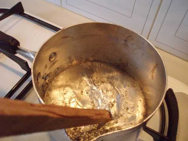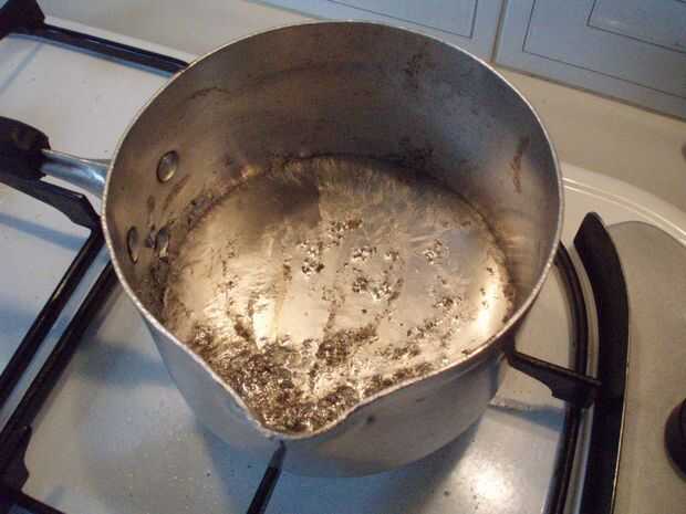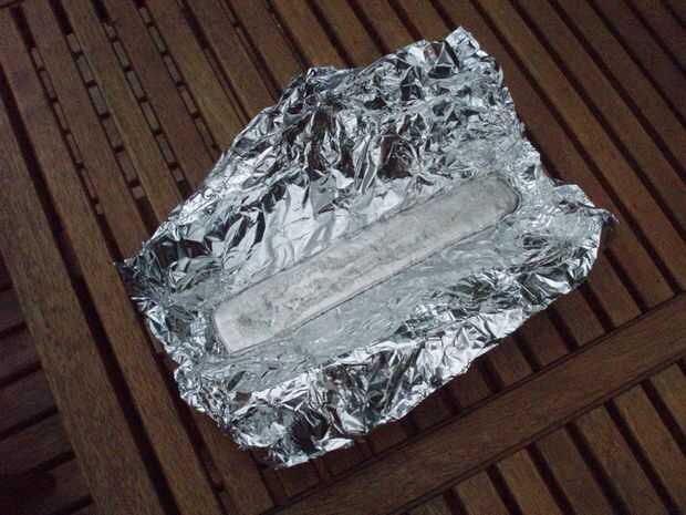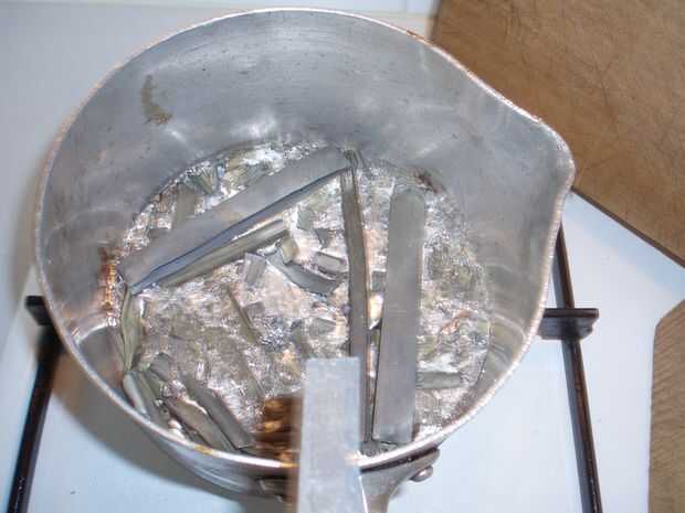 Cubrí mi molde en papel de aluminio para hacer más fácil salir más tarde el lingote sólido. Entonces, cuando había trozos de la izquierda, vierte plomo fundido en el molde.