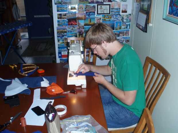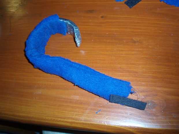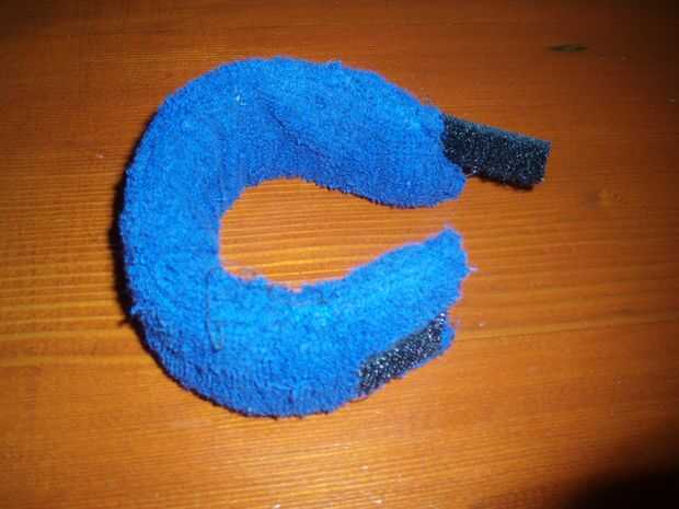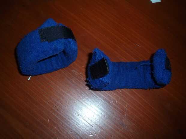 Now I had functioning wrist weights. Y se veían muy cool. Pero no eran muy cómodas. Tan medido hacia fuera de un patrón, cortar encima de una toalla, un velcro y algunos viejo material de la cortina (para fuerza) y cosido como el viento! A mitad del tubo con una toalla de doble espesor en el interior y material en el interior de la exterior de la cortina medio (entendido?) para proporcionar fuerza cuando cosí en el velcro y Voila! Pesas de muñeca de 2 x 1Kg.