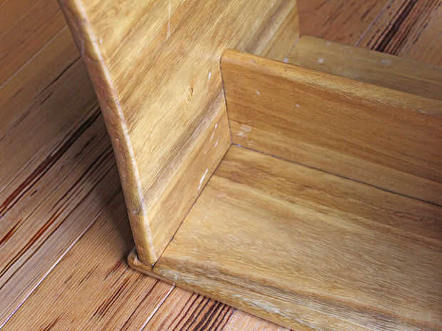 • Enrutan los bordes con la esquina redonda de poco, pero la izquierda y derecho contra el fondo de apoyo plana, así como las tapas de las piezas de lado de la mesa.