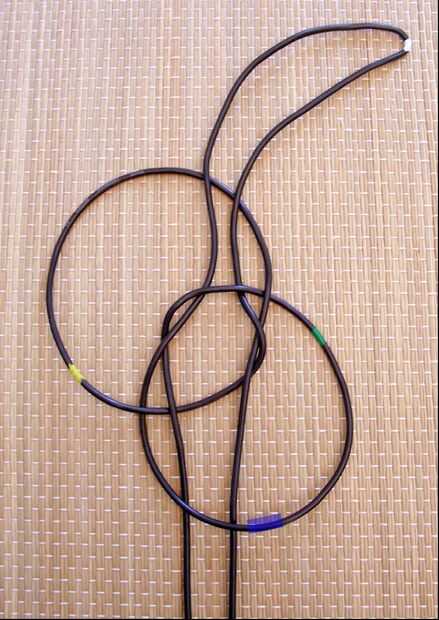 Tenga en cuenta la porción azul de este bucle pasa alrededor del exterior de la parte amarilla de la primera lazada.