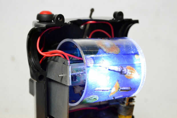 1. en primer lugar, necesitará añadir un interruptor momentáneo en algún lugar en el robot. Esto se utiliza para encender el LED. He utilizado un interruptor momentáneo ya es lo que utiliza el circuito.