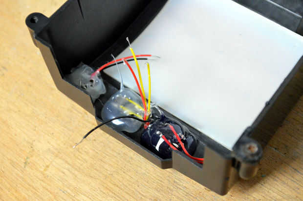 2. siguiente cortar los cables hasta la mitad en cada uno de los interruptores, mic etc.. Usted se podría soldar pero pensé que sería más fácil simplemente a fijar con soldadura y del encogimiento del calor. Además puede añadir alguna cinta adhesiva a cada par de cables en la placa de circuito y escribir lo que son para.