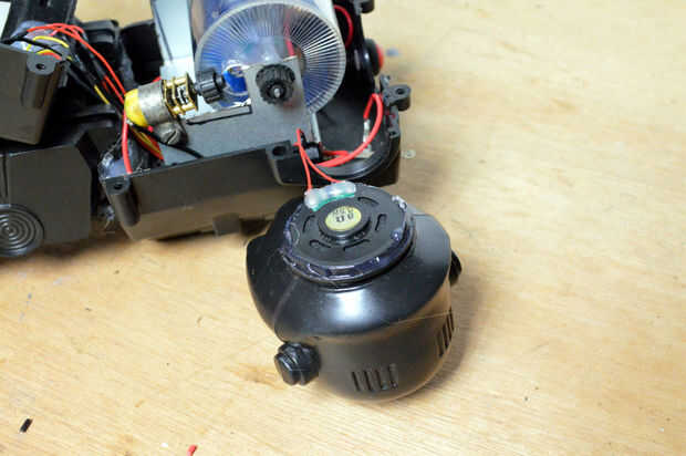 1. he decidido añadir el altavoz a la parte inferior de la cabeza. Caben perfectamente y dio a su voz un sonido agradable, de robot.