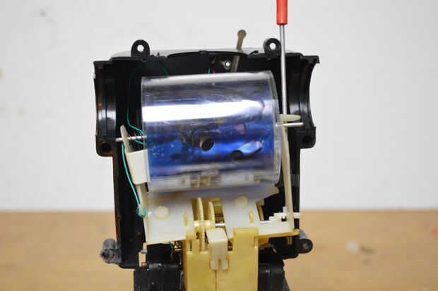 1. Perfore el hucks mantiene el mecanismo del motor en su lugar. Retire con cuidado el mecanismo del motor del cuerpo del robot.
