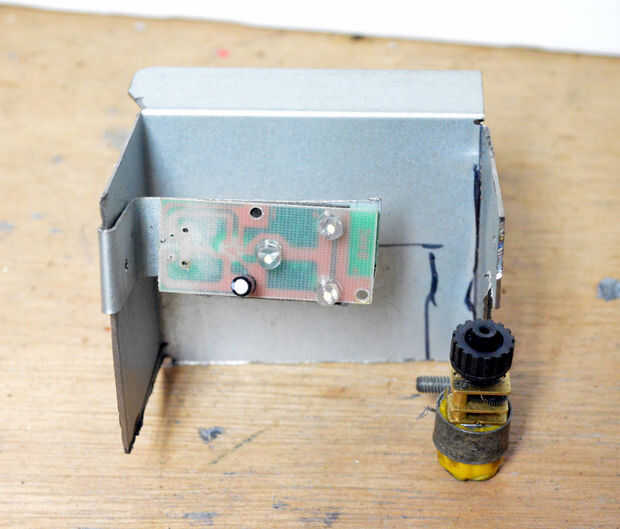 1. a continuación es necesario fabricar un brazo para el LED. Usé un pequeño circuito que saqué de una luz de bici. Puede utilizar cualquier tipo de luz de bicicleta o plataforma incluso sólo unos LED de usted mismo.