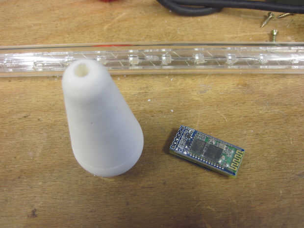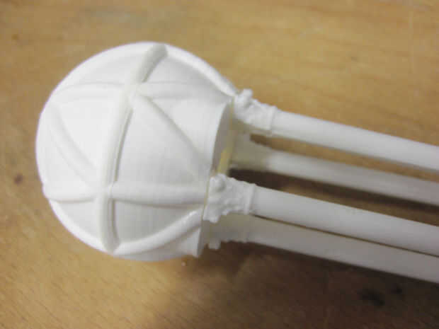 Después de la impresión, las columnas están pegadas con epoxy en los agujeros en el mundo superior.