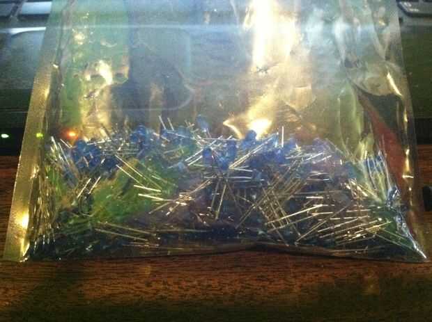 Todavía tenía una carga tope de leds de hacer este instructable ( y que los saqué de aqui si usted planea usar un montón de leds en tu vida (http://www.aliexpress.com/wholesale?SearchText=led+blue+diffused+3mm&catId=&initiative_id=SB_20140523170424). Todo lo demás tengo en radioshack o en walmart, pero usted podría probablemente conseguirlos en cualquier lugar para más barato si usted mira difícilmente bastante. Por cierto, los leds llevará un tiempo llegar a usted ya que son de china.