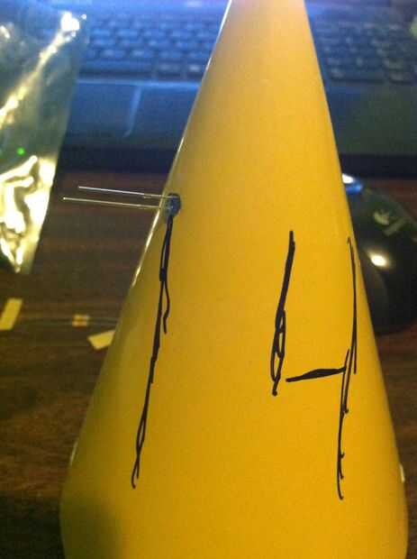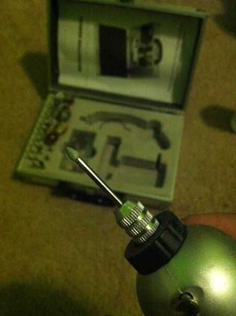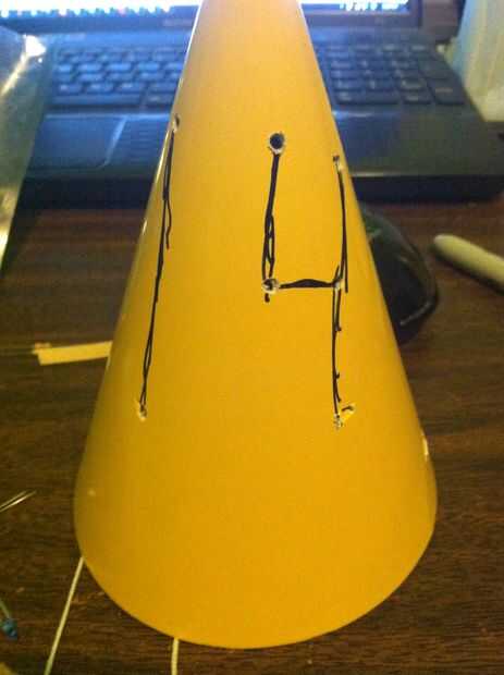 Después de dibujar mi diseño en los sombreros, empecé a hacer agujeros en sitios clave de todo mi sombrero para mi diseño. Después de cada uno, he probado el tamaño del agujero con un led y espera que el agujero no era demasiado grande. Me enteré más tarde que mi herramienta rotatoria funcionó de maravillas en tiempo y pulcritud.