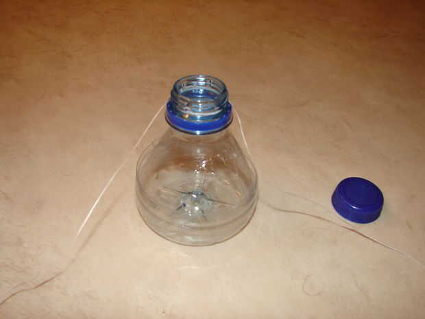 Envolver la cadena de pesca alrededor de las roscas y tornillos en la tapa.