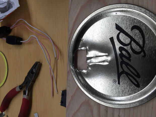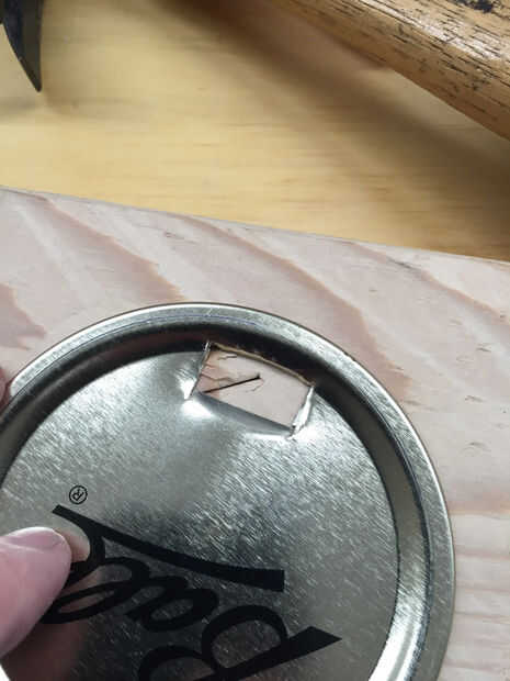 Para colocar el aro de la tapa, que íbamos a tener que cortar un agujero para los puntos de contacto. Como quería mi stand para 'activar' cuando una botella de Nuka cuántica está presente, también corté un agujero para el interruptor de palanca. Utilizando un martillo y cincel, corte un agujero en forma de T en la tapa.
