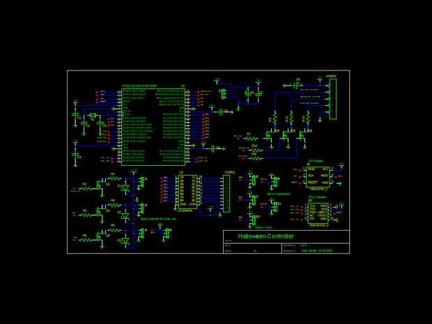 El controlador se basa en un ATMega324P en paquete TQFP 44 pin. El esquema fue dibujado en herramienta de gschem de gEDA. Mirando el esquema que se adjunta en ambos PNG y en formato de gEDA/gschem.