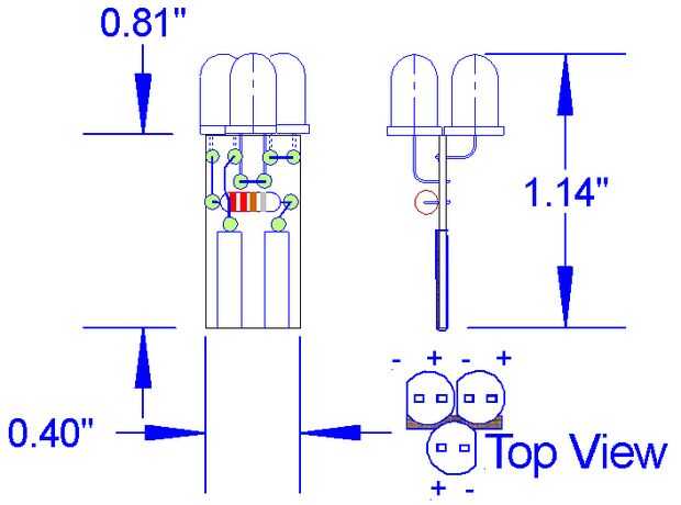 - · 3 LED brillante (tamaño = 5mm) (mi caso azul brillante 11000-mCd es brillo a 20 mA)