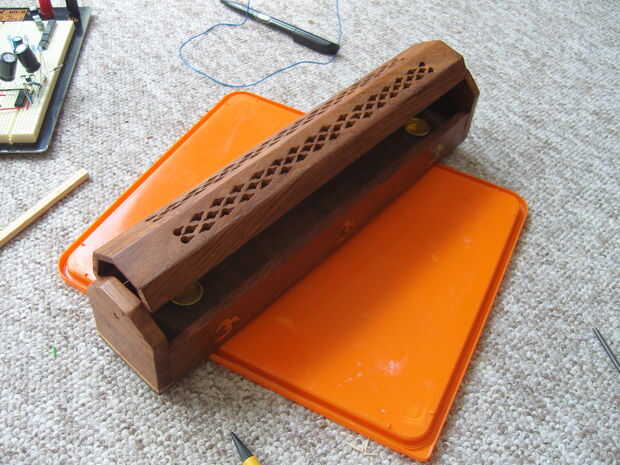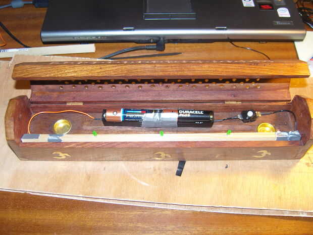 Tomé mis de una rota antorcha (linterna). Usted quiere algo que usted puede montar dentro de la caja cuando la tapa esté cerrada. También necesita trabarlo en su posición (como un interruptor de la luz).