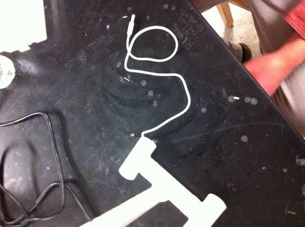 Ahora que tienes los cables soldados juntos, hará que su soporte de PVC. Tomar 2 piezas de PVC de 2 pulgadas y usarlos para conectar 3 o más articulaciones T. Los dos en el exterior son paralelos con el suelo. Del medio es perpendicular con el suelo. Luego tomar su pipa PVP de 1 pies 1/ 2 pulgada e insertar en la parte superior de la media conjunta de T.
