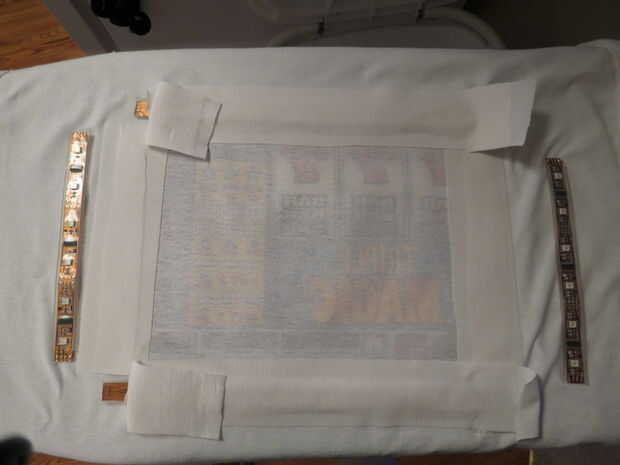 Cortar las tiras de luz así hay 6 LED en dos tiras de 10 leds en dos tiras más (total de 4 tiras)
