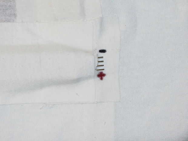 Una vez que todos ha determinado es que ahora podemos cerrar las solapas de tela extra. Ponga todos los planos y determinar si hay cualquier extra que desea recortar. Corte una raja donde los pernos se sobresalir y marcar el- y + (ver foto D)