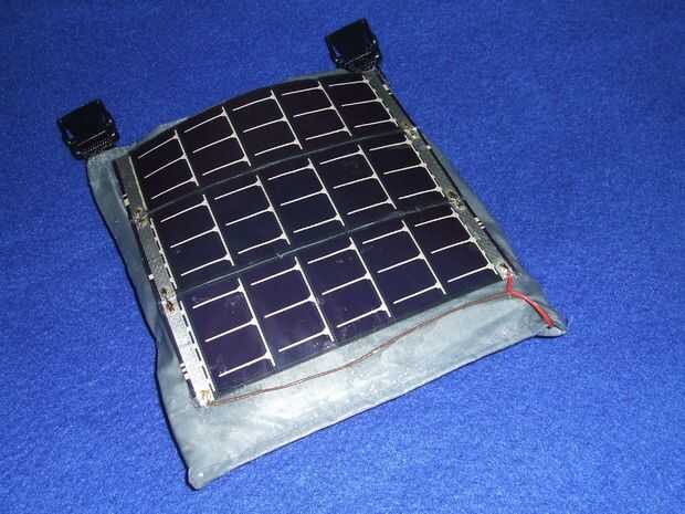Entonces, comencé a pensar "Hey, que puedo hacer ambos al mismo tiempo!" Nueve prototipos más tarde, esto es lo que tenía, el "Cargador Solar llueva o truene". Además de ser útil para la mochila, este cargador se conecta con hebillas de paracaídas, así que puede adjuntar a una bandolera o una mochila, o colgar en tu ventana de la cocina. Tarda unas diez horas para cargar un teléfono celular típico, pero es un cargador de almacenamiento, por lo que podría dejar el cargador en el sol para recoger energía durante el día, y luego conecte la piedra de afilar de celular por la noche a cargo de la energía almacenada.