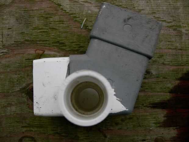 También incluí una pierna desbordamiento mediante el uso de un tee y un codo de la 90 grados para que pueda ver si el sistema completo. Si el sistema es completo o su llueve tan duro que no puede mantener el barril de lluvia, el exceso de agua fluye sobre el vertedero y bajar el canal como lo haría normalmente.