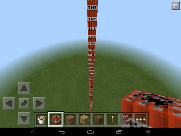TNT y Lava de inventario y la línea vertical de TNT para asegurarse.
