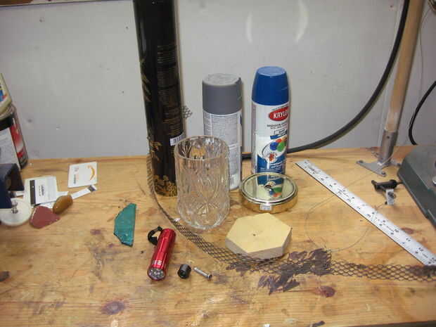 • Envase de cristal con un agujero en la parte inferior (el mío es el cuerpo de una lámpara)