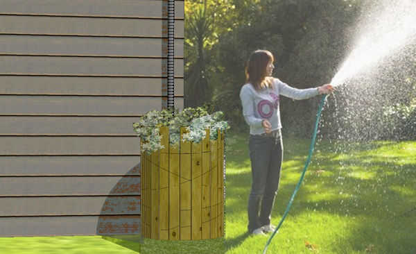 III. Coloque un tramo corto de manguera de la conexión de desbordamiento superior de la primera serie de barriles para el montaje de desbordamiento inferior de la siguiente serie (permite la transferencia de agua). Hacer lo mismo abajo de la línea y luego conecte una manguera a la conexión de desbordamiento del último barril para dirigir cualquier desbordamiento adicional de barriles.