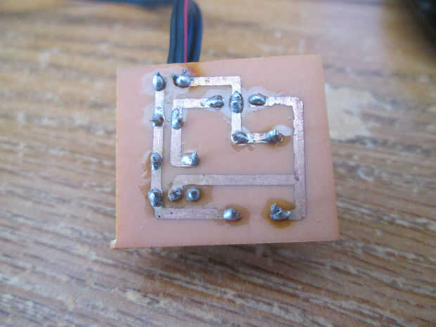 Este circuito tiene muy pocas piezas y puede ser montado en un protoboard en minutos para la prueba. De hecho pueden omitirse los condensadores y que todavía funciona muy bien. Los condensadores están allí para suavizar cualquier ruido y proporcionan una salida limpia dc. Usé el método de transferencia de tóner junto con vinagre, sal y agua oxigenada para grabado de pcb. Para más información sobre grabado de cobre había revestido de tablas y hacer tu propio pcb o este circuito búsqueda youtube de video tutoriales que están disponibles.