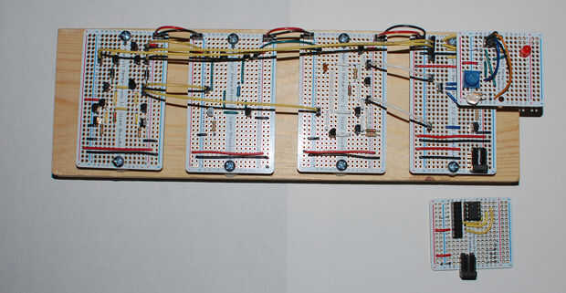 Se me ocurrió que sería posible hacer un error algo de cableado a él y dañarlo. Así que incluí un accesorio para probar un circuito antes de conectar en el tablero y un circuito modular para la prueba. Si hay un error de cableado en su circuito puede saltar un 741 ciento 66 y ahorrar daños a su proyecto.