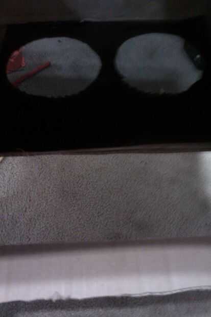 A continuación, necesita película oscura (coche ventana teñido película funciona bien) para que desde el exterior, buscar negro los ojos y la boca. No puse ninguna película en la boca por lo que puedo ver mejor cuando está oscuro, por lo que es opcional. Un calefactorio para sujetar el plástico a la cartulina debe ser suficiente.