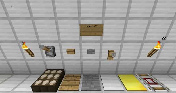 Entradas activan salidas. Por ejemplo al hacer clic en un botón que está al lado de una puerta se abre. Esta es la base de todos los artilugios de redstone. Hay muchas cosas que puedes usar como entradas (palancas, botones, placas de presión, ect.). También hay muchas cosas que se pueden utilizar como salidas (pistones, puertas, puertas ect.)