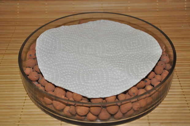 Me gusta usar una hoja de papel (papel para la cocina de limpieza multiuso) ayudar a separar el material drenante y el sustrato... funciona perfectamente sin, aunque...