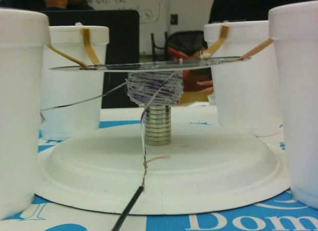 Este altavoz está hecha de materiales simples que se pueden encontrar en cualquier aula de física.