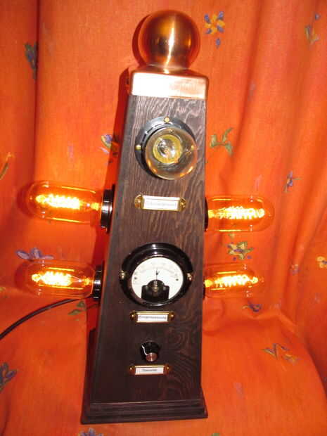 lámpara Steampunk. Cereza brasileña, madera contrachapada y pipa improvisada para la iluminación industrial un poco. Terminado con el trapo en poly, pintura gris martillada y poco de metal absurdo improvisada de mi vertiente...He añadido algunos engr