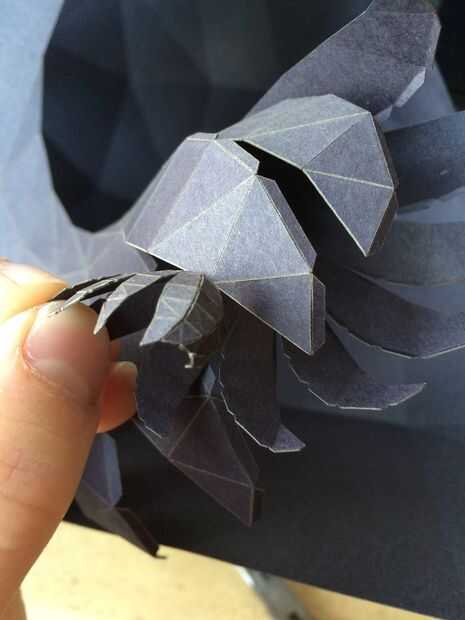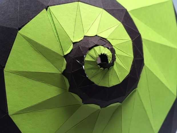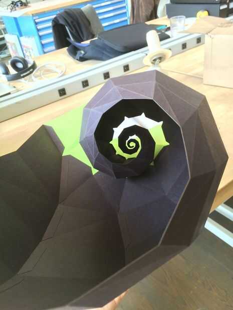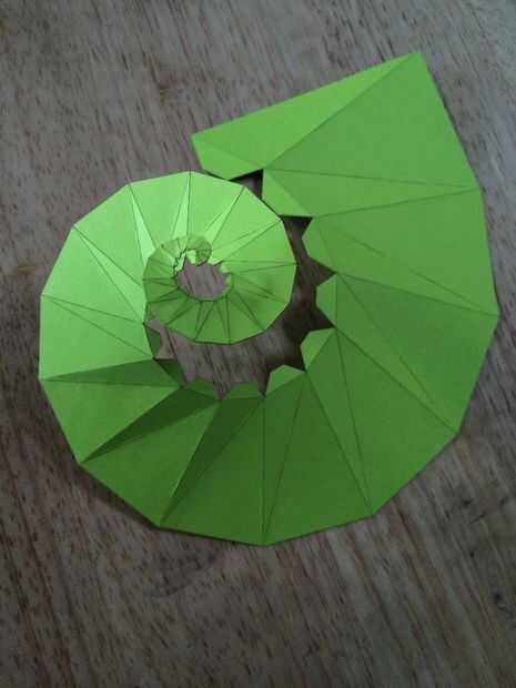 Un efecto interesante es la pila de error. Porque el papel tiene grueso, pero el modelo 3d una idealizada superficie de espesor cero, se produjo un error acumulado donde el libro verde se convirtió cada vez más apagado como pegué unidades más pequeñas y más pequeñas. Una vez el error tan mal que pensé que sería obvio visualmente y estructuralmente, I simplemente cortar la espiral verde, agregado un pequeño papel para tomar la brecha y continuó.