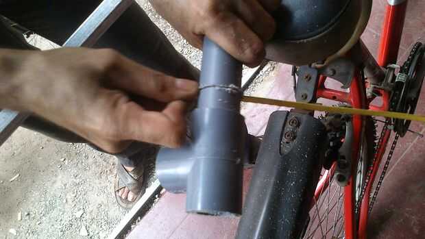La longitud de la Tubería de B es la longitud entre el marco y la punta del pedal tomada paralela al suelo de modo que la rejilla borra el pedal mientras voy en bicicleta. Dar margen para un poco de flexión / bamboleo