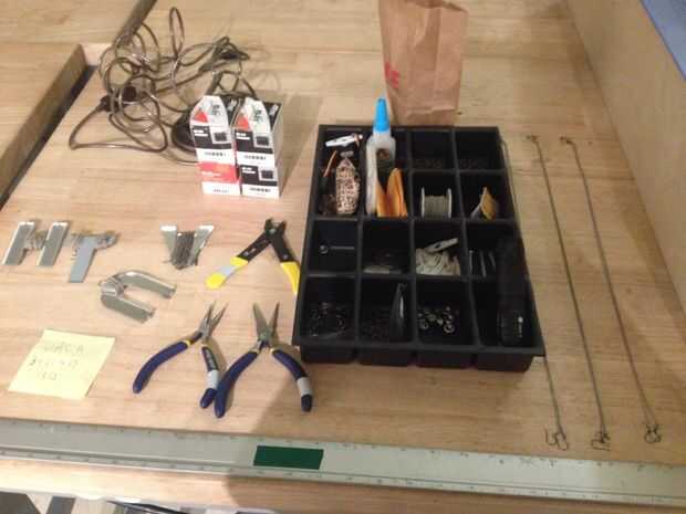 - Dos alicates pequeños, doblar los ganchos abiertos, alimentarlos a través de los ojales, luego cierre hacia arriba.
