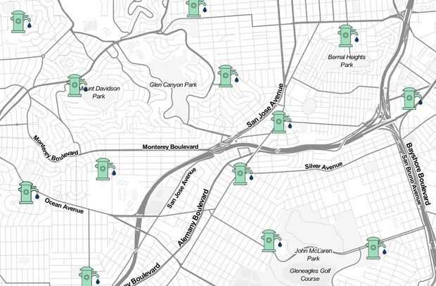 En 2006, la Comisión de utilidades públicas de San Francisco (SFPUC) introducido 67 emergencia beber tomas de agua para uso en caso de un desastre de toda la ciudad.
