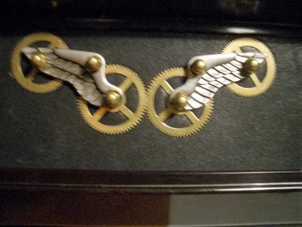 Esta radio no tiene ninguna escala para afinar. Así que cerré el agujero por un adorno de algunos engranajes de bronce y alas de acero. Esto le da el nombre de la radio: