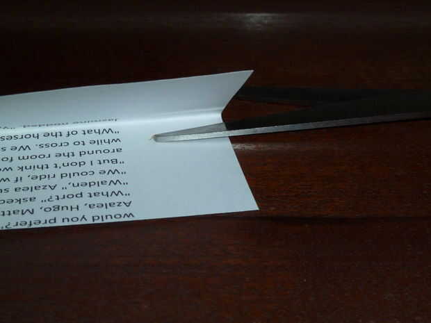 luego en el extremo opuesto corta a medio camino por el medio del papel (foto referencia)