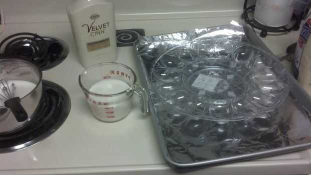 Hay cerámica agradable y Tupperware las bandejas del huevo del mundo, pero mina fue fino plástico barato. Yo estaba un poco preocupado, así que poner en una placa para horno cubierta con papel de aluminio. Usted podría hacer perfectamente bien sin ella, pero la bandeja para hornear dio mi bandeja estabilidad adicional y más espacio para aferrarse.