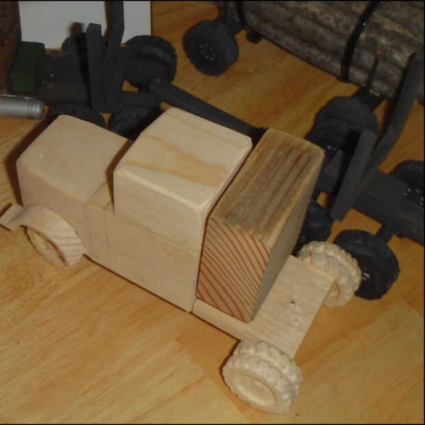 Pegar bloques de madera en forma de cabina. Usé pino común y tiene dimensiones mirando fotos del carro real.