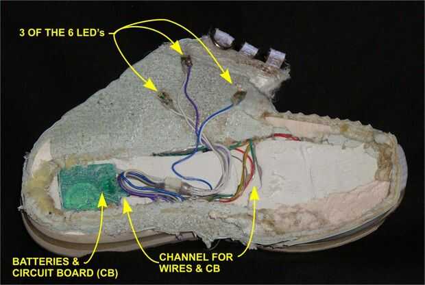 tenía cuidado de no cortar ninguno de los cables o dañar el circuito expuesto el interno más secretos de la zapatilla izquierda. Significa proceder lentamente cuando está en duda. Lo último para quitar era la planta del pie interna (pinzas necesarias).