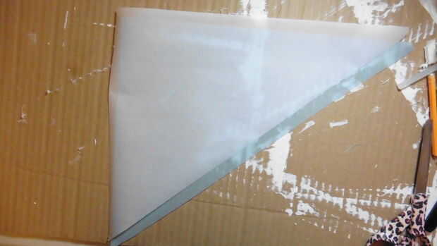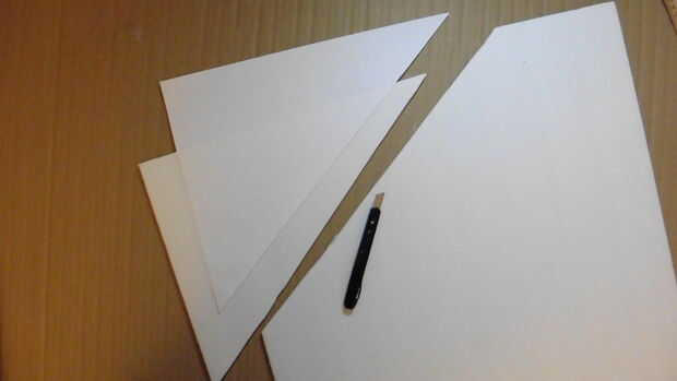 1. Tomar el papel de cartel y cortar por la mitad diagonalmente (el papel de cartel utilicé era 11 "x 14").