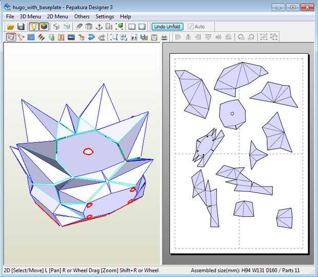 Una vez que estaba contento con el diseño, necesitaba encontrar una manera de "desplegar" en polígonos individuales. Yo había oído del programa japonés papercraft Pepakura ser utilizado por clientes para hacer la armadura, así que intenté. Funcionó, e incluso me dejó probar mi diseño en papel primero! Me alegra que lo hizo, porque esto me permitirá refinar el diseño de una manera muy rápida y barata. Siempre las cosas se ven diferentes en la vida real.