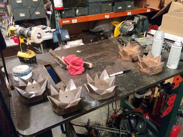 A continuación pinté una solución de pavonado de pistola en las bases, teniendo cuidado de no entrar en las costuras donde las piezas fueron dobladas. Esto llevó mucho tiempo para hacer lo correcto, pero resultó en un maravilloso contraste sutil a lo largo de los bordes de la pieza que realmente me encantó.