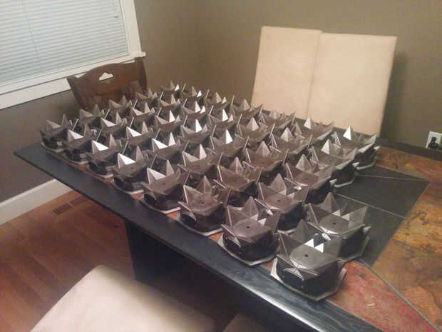Y eso fue todo... excepto una vez que fue seleccionado como el diseñador de la base, tuve que hacerlo de nuevo. 32 veces! (Realmente me dio corte suficiente acero para 40, sólo para tener repuestos. Terminé haciendo 37 en total, sin contar los prototipos.)