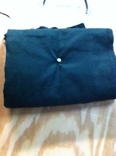 Vas a querer doble la tela por la mitad para comenzar con. Ya debe ser doblado en la mitad una vez de cuando la compraste, si no, básicamente lo desea 4 hojas gruesas. Coloque la plantilla negra sobre la tela y hacer el primer doblez de la izquierda en el bloque. Asegúrese de que cubre toda la fachada del bloque, no quieres hojas de media, sólo hace más problemas más adelante. Entonces comienzan los bancos del bloque a la derecha, tirando de la tela apretada a medida que avanza. Los pliegues más tienes, cuanto más gruesa será la rueda. 5-7 saltos está bien en mi opinión, pero utilice su mejor juicio. Corte cuando esté satisfecho. Luego, inserte un clavo en el centro de cada lado, lo suficiente como para asegurar la tela al tablero.
