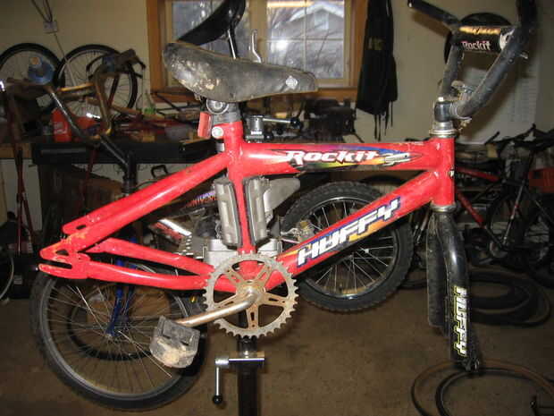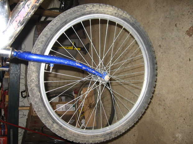 Un marco de bicicleta para niños con manivelas y rueda trasera