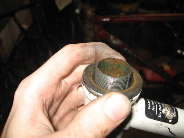 Una vez que la madre está fuera, desenrosque la tuerca de bloqueo auricular de la tapa del tubo de dirección. Esto es hecha generalmente con un 30, 32, 36 o llave de 40mm. A continuación, quite las arandelas. En la poco probable incluso que es un anillo de bloqueo, quitar, también, con una llave de anillo de cerradura. Si no tienes una llave de anillo de cierre, o bien encontrar a alguien que ni improvisar. Me parece que un robusto destornillador, un martillo, un tornillo y paciencia y juramentos generalmente hacen el truco en un apuro, y he oído informes de que una llave de tubo ha trabajado bien para otras personas.