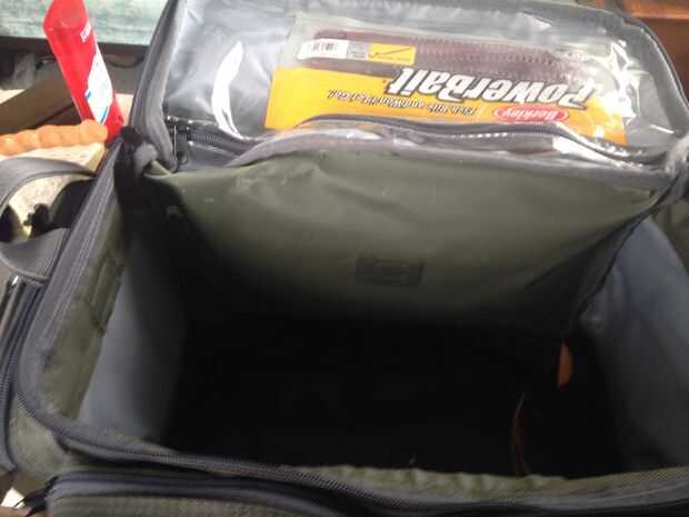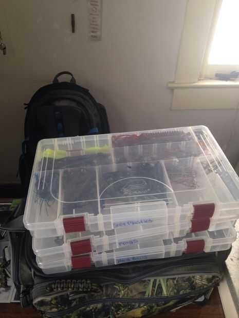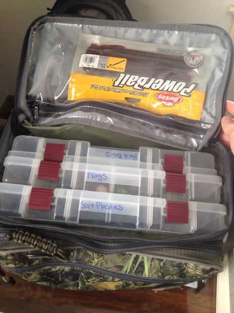 Este es mi lugar para mis 3 polizones, la bolsa puede contener 4 de ellos pero ahora no tengo necesidad de 4 polizones. Dentro de if son mis plásticos suaves, ranas y mis cebos duros