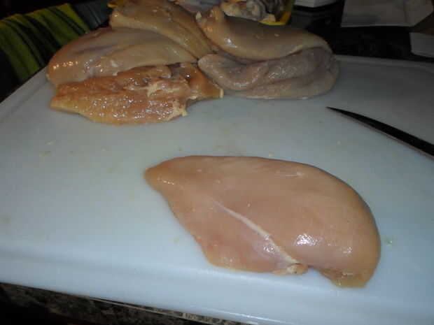 Paso 1: Sin hueso, sin piel de pechuga de pollo con trozos de grasa